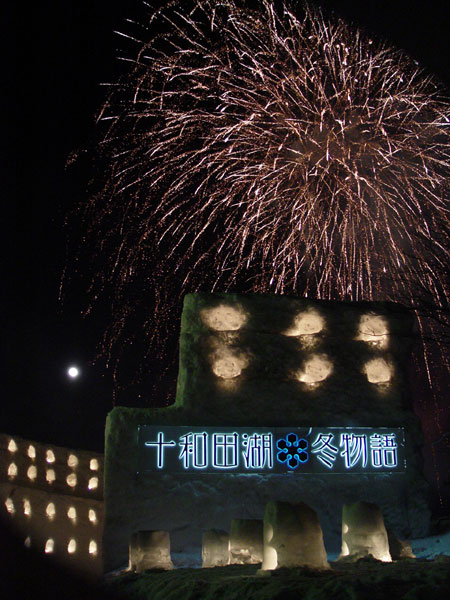 十六夜月(いざよいづき)が見える冬の夜の花火